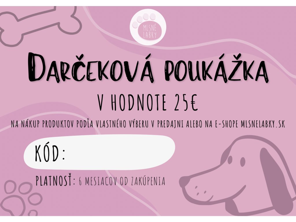 Urobte radosť svojim blízkym a obdarujte ich darčekovou poukážkou na nákup tovaru v našom e - shope, alebo v kamennej predajni. Je to veľmi jednoduché, po objednaní poukážky vám zašleme poukážku aj s kódom buď na mail. Vy si ho doma vytlačíte a už vám nič nerániť obdarovať niekoho, koho chcete potešiť. Poukážka je platná 6 mesiacov a dá sa využiť pomocou kódu, ktorý je na nej uvedený.