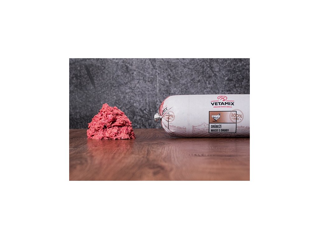 Vetamix jemne namleté hydinové mäso s drobmi pochádza iba od overených lokálnych farmárov. Bez obáv ho môžete podávať aj psom a mačkám s diétou alebo so zažívacími problémami.