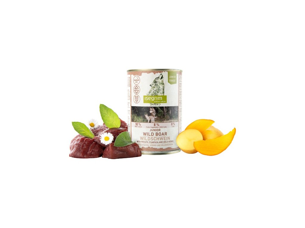 Krmivo pre šteňatá a mladé psy, inšpirované prirodzenou výživou pôvodných psov: chutné zloženie z najjemnejšieho mäsa z diviaka v kombinácii s výživnými zemiakmi a zdravou tekvicou charakterizuje toto chutné kompletné krmivo pre psov – ideálne pre potreby mladých psov. Dochutené divokými bylinkami.