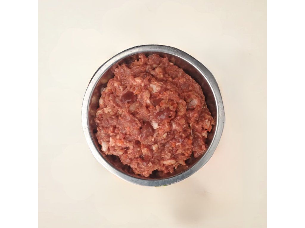 Kompletná BARF krmná zmes z kvalitného kuracieho mäsa z českého chovu, vhodná pre psy všetkých plemien a vekových kategórií. Zmes obsahuje kuraciu svalovinu, kosti, pečeň a starostlivo vybranú zeleninu, vďaka čomu predstavuje vyvážené a prirodzené krmivo bez potreby ďalších doplnkov.