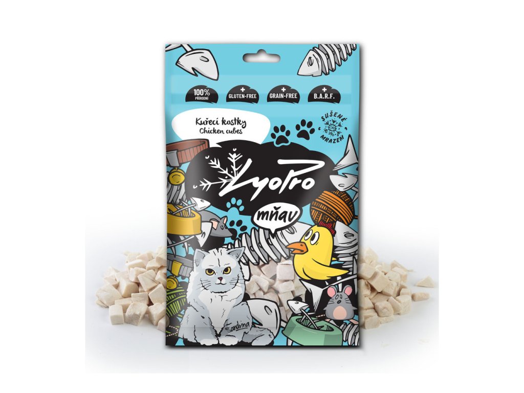 Mrazom sušené mäso Lyopro je ideálnou maškrtou pre všetkých mačacích gurmánov a vyznávačov BARF – surovej stravy. Keďže pamlsky neobsahujú dráždivé konzervanty, farbivá ani najčastejšie alergény, sú skvelou voľbou aj pre psy trpiace celiakiou či potravinovými alergiami.