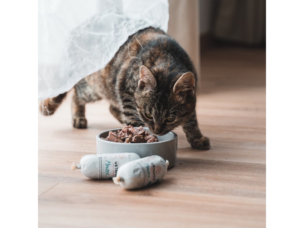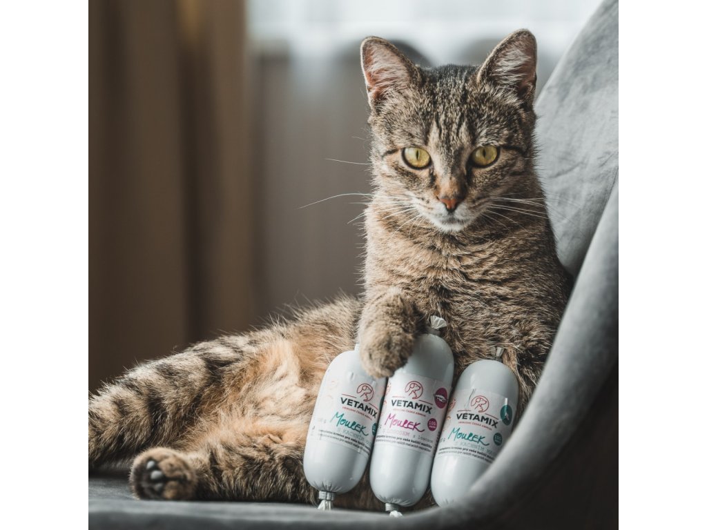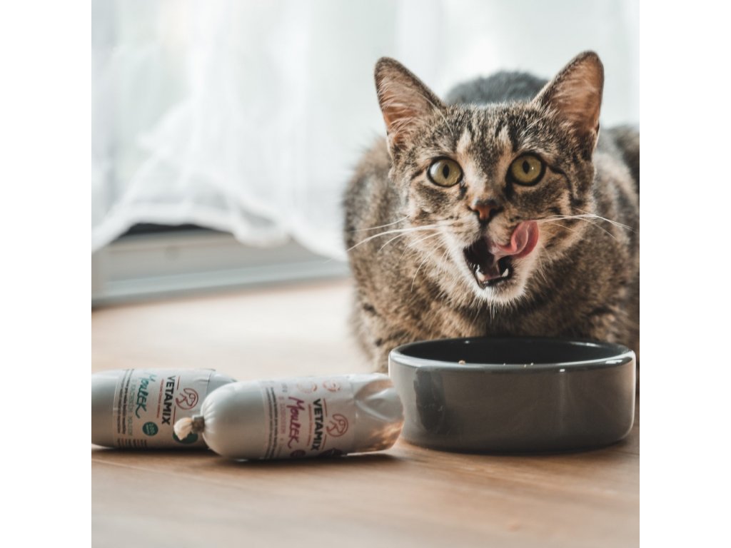 Šetrne sterilizovaná saláma MOUREK poteší všetkých mačacích gurmánov. Na doma alebo na cesty. Saláma je skvelou alternatívou krmiva aj v prípade, že práve nemáte po ruke mrazničku na klasický BARF. Naša saláma MOUREK obsahuje vyvážený mix prémiovej svaloviny a pečene. Bez obáv ju doprajte aj mačičkám s diétou alebo zažívacími problémami.