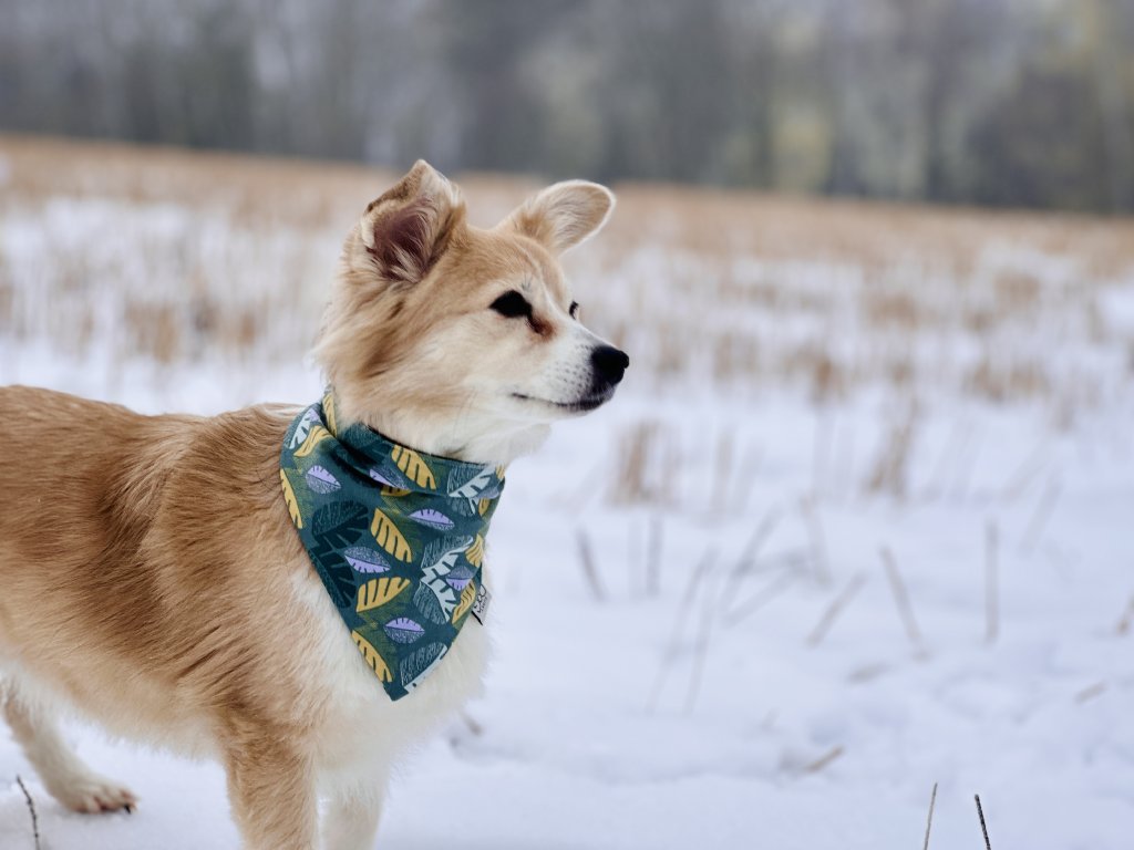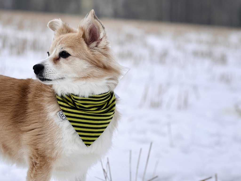 - Ak je váš psík na pomedzí dvoch veľkostí alebo ešte porastie, zvoľte radšej väčšiu šatku – môžete ju jednoducho prispôsobiť uzlíkom alebo posunutím gombíka.