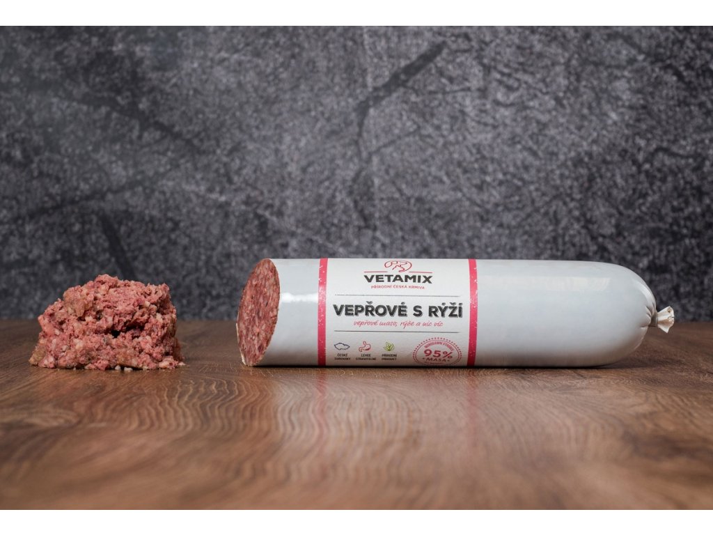 Šetrne sterilizovaná saláma plná kvalitného bravčového mäsa je skvelou alternatívou krmiva, keď práve nemáte po ruke mrazničku na klasický BARF. Salámu bravčové s ryžou využijete ako doma, tak aj na cestách s chlpáčom. Obsahuje 95 % lahodného bravčového mäsa bohatého na výživné tuky. Zvyšok tvorí kvalitná biela ryža, ktorá je ideálnym hypoalergénnym doplnkom. Bez obáv ho môžete dopriať aj psom a mačkám s diétou alebo zažívacími problémami.